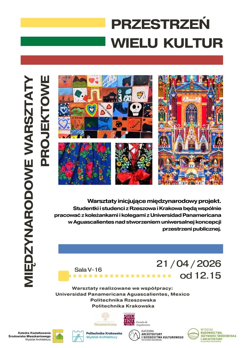 W poniedziałek, 21 kwietnia, na Politechnice Rzeszowskiej, we współpracy z Politechniką Krakowską, odbędą się międzynarodowe warsztaty projektowe „Przestrzeń Wielu Kultur”. Wydarzenie inauguruje wieloetapowy projekt edukacyjny, łączący studentów architektury z Polski i Meksyku. Jego celem jest opracowanie koncepcji uniwersalnej, dostępnej przestrzeni publicznej, sprzyjającej integracji międzykulturowej. Gościem specjalnym będzie profesor Luis Arturo Méndez Alba z Universidad Panamericana w Aguascalientes.